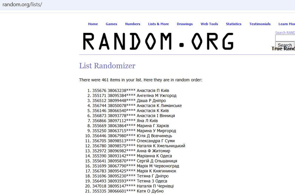 08.12.2025 ми за допомогою random.org визначимо тих, хто отримає дегустаційні набори HiPP. Список всіх щасливчиків опублікуємо на цій сторінці нижче.
