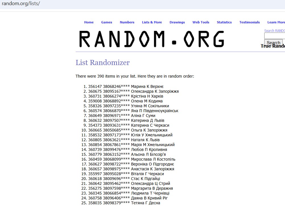 6 березня 2026р. ми за допомогою random.org визначимо тих, хто отримає дегустаційні суміші HiPP. Список щасливчиків опублікуємо на цій сторінці нижче.