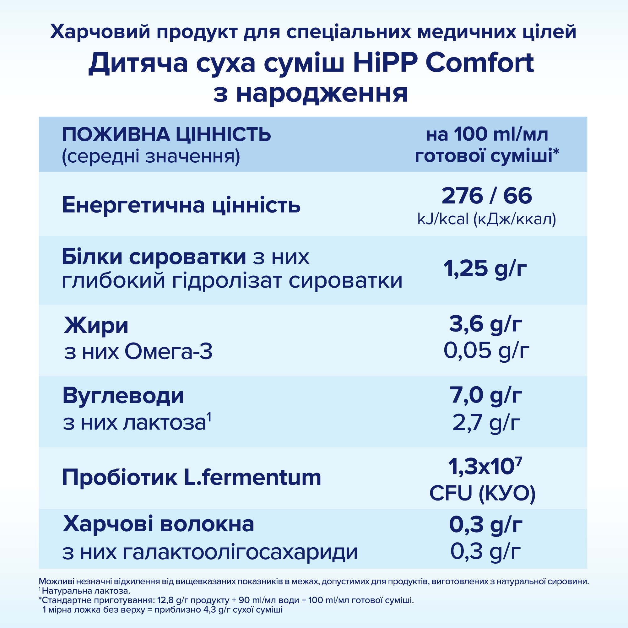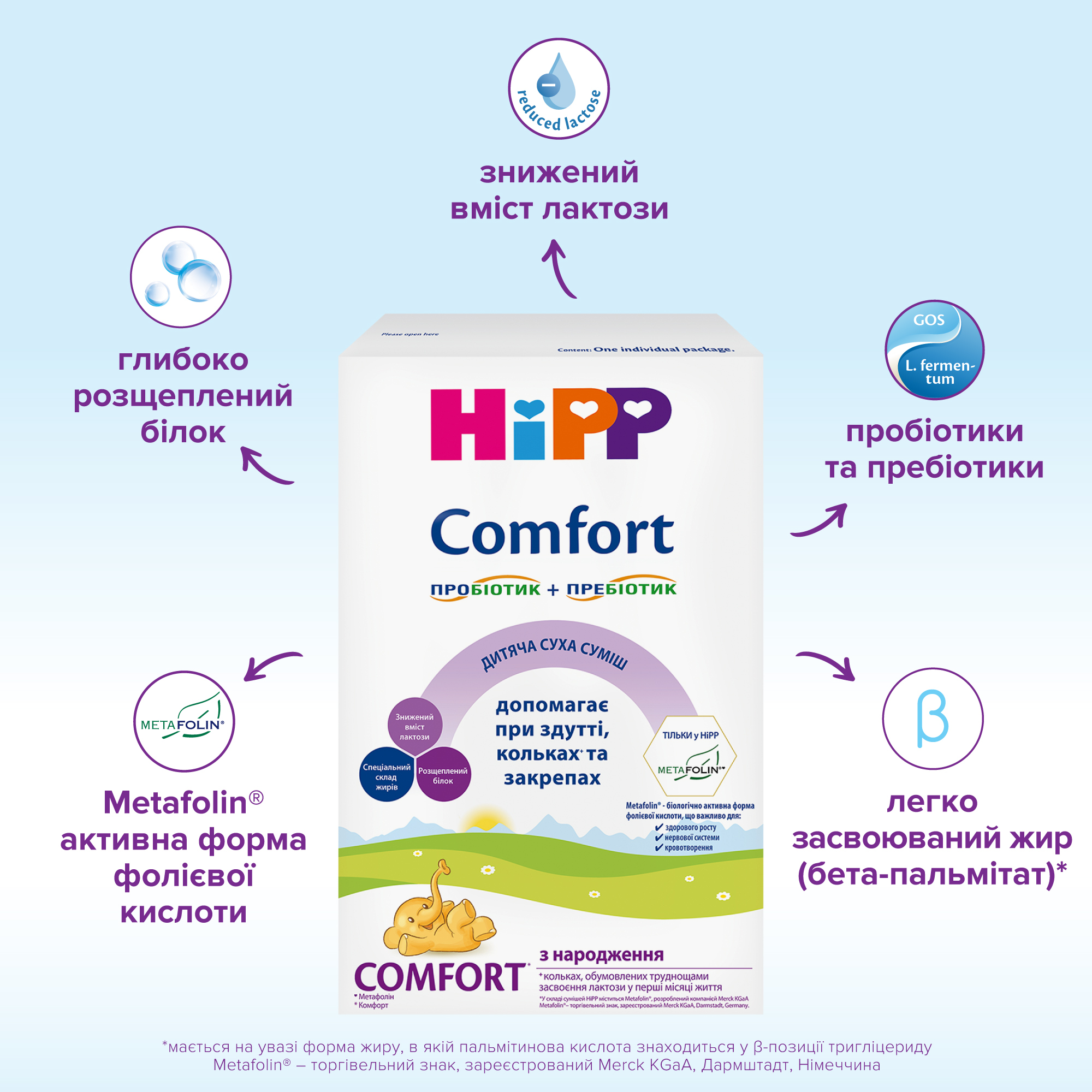 - HiPP «Comfort» містить легко засвоюваний жир (бета-пальмітат), структура якого наближена до жирних кислот грудного молока, що сприяє послабленню випорожнень.