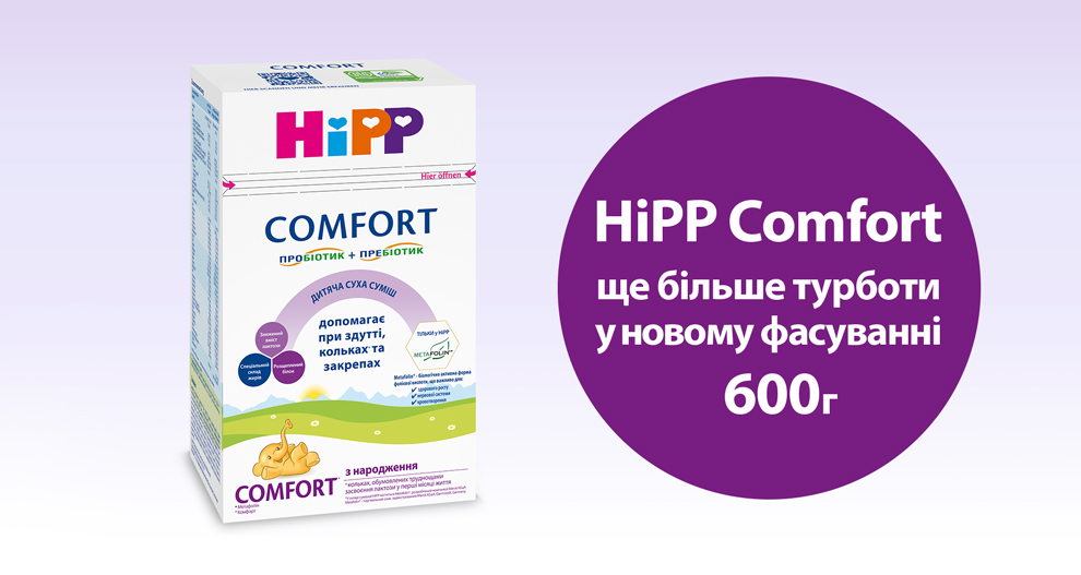 HiPP Comfort доступний і у новому фасуванні 600г!