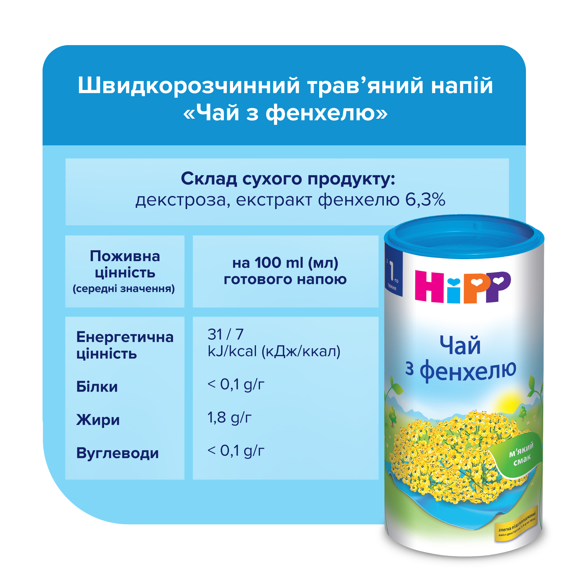 Кожен день ми Hipp кохаеєм, з фенхелем чай випиваєм. Кращий він,ніж пробіотик, ніколи не болить животик.