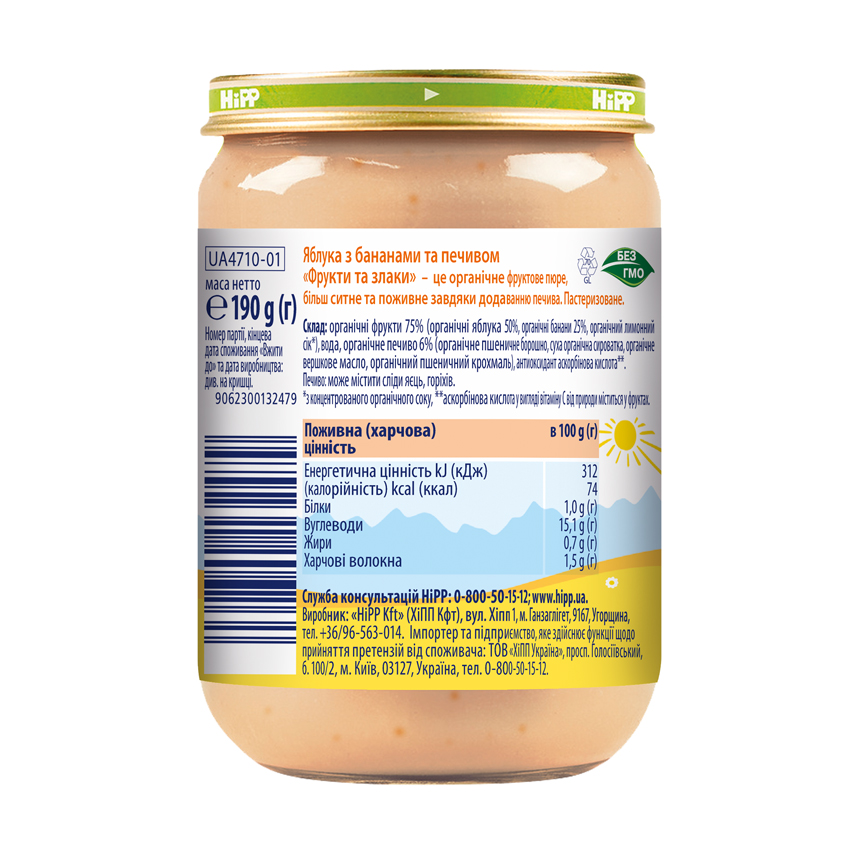 Чому я вибрала саме продукцію Hipp? По-перше, дуже гарний смак та консистенція, малюк в захваті! Прекрасне поєднання для знайомства малюка зі смаками. По-друге, натуральний склад продукту, без цукру та замінників. По-третє, дуже поживне та ситне пюре, гарне поєднання фруктів і злаків, може повноцінно замінити прийом їжі. Дуже гарне рішення! Дякую Hipp за продукію!