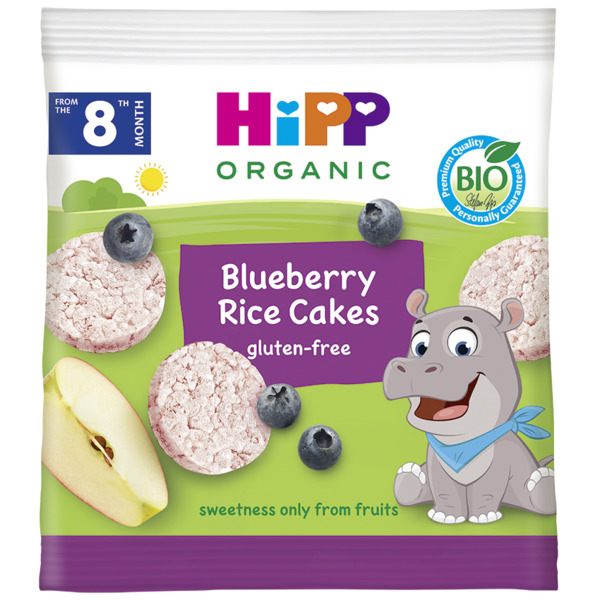 Син полюбляє органічні рисові хлібці з чорницею та яблуком від Hipp. Рис не дуже йому подобається, а ось ці хлібці заходять на ура! Чорниця дає гарний аромат, а яблуко відмінний смак, дуже класне поєднання інгредієнтів