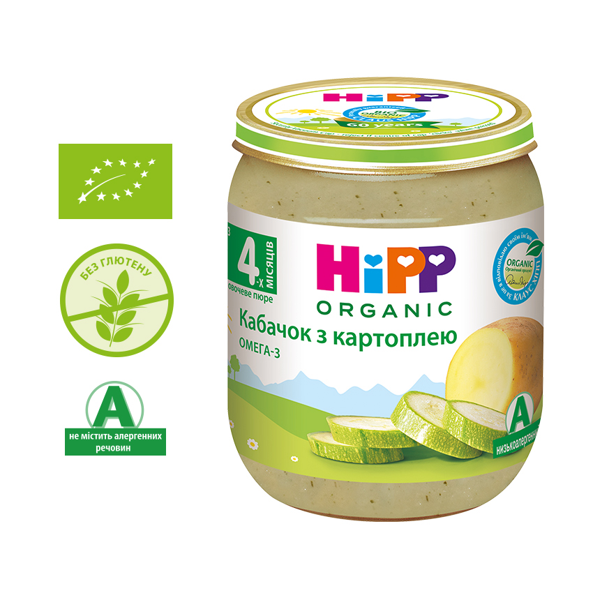 Пюре с кабачка и картошки это первое пюре которое попробовал мой малыш, для каждой мамы первый прикорм для малыша очень важен, мы с мужем с трепетом наблюдали как первые ложечки пюре кушает наш малыш, волновались понравиться ли ему, будет ли какая-то реакция и не дай бог аллергия, в качестве пюре мы были уверены на все 100%, фирме Hipp доверяем!!!